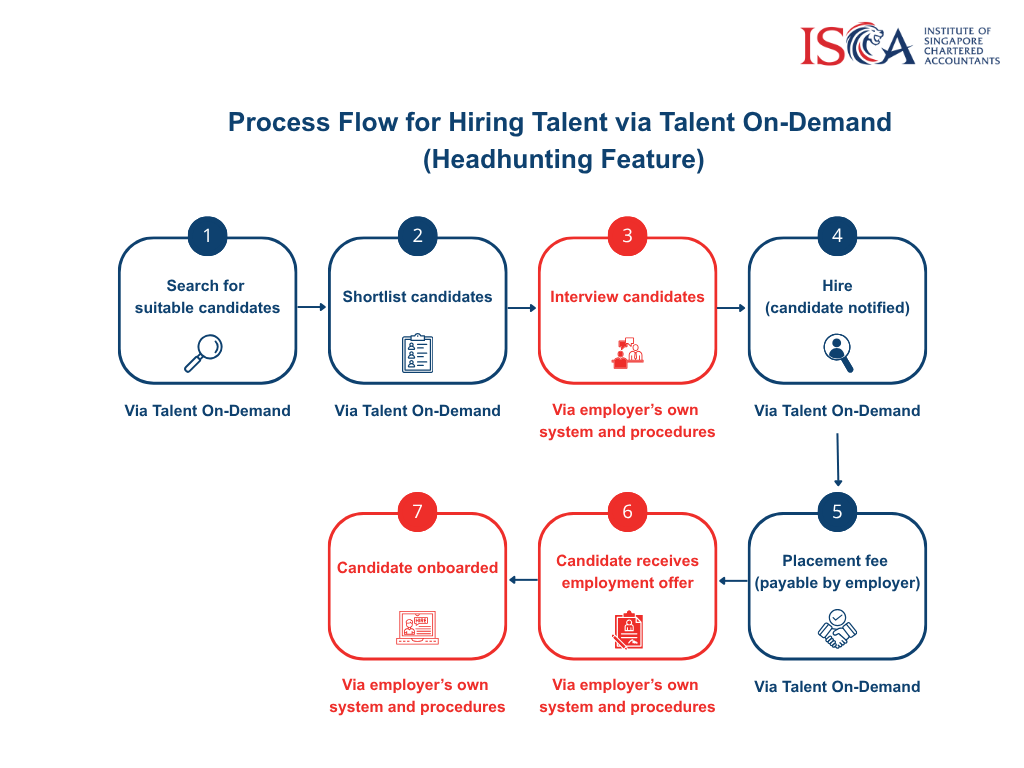 1. What is the process flow for hiring talent using the ISCA Talent Marketplace’s Talent On-Demand (Headhunting Feature)?